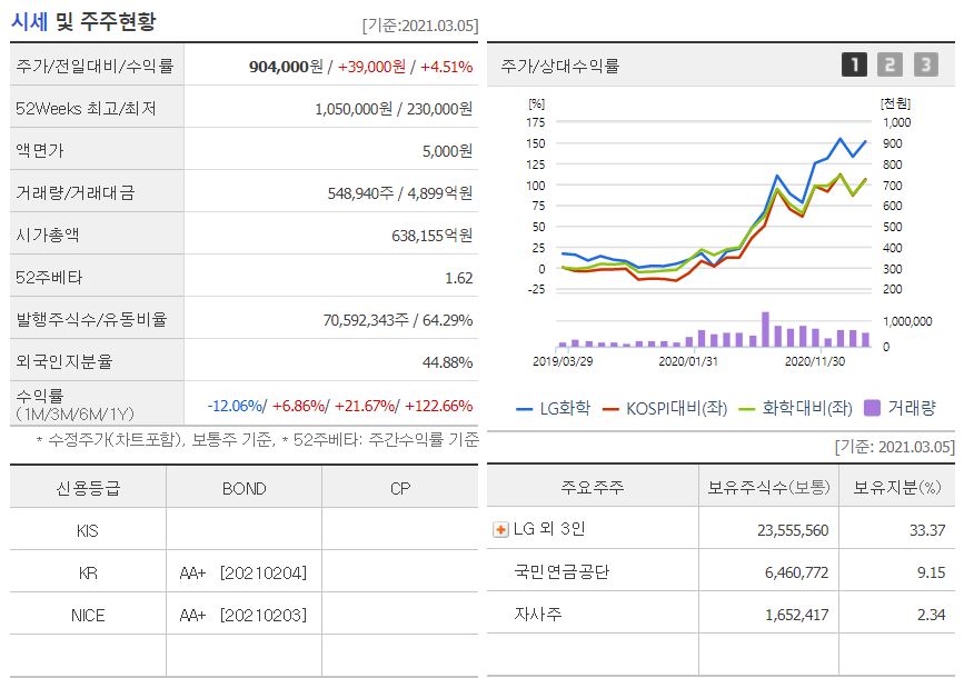 기업 등급은 말할 것도 없고, 수익률또한 말한 것도 없다. 좀있으면 100만원을 향해가는 LG화학 삼성처럼 조만간 분할을 하지 않을까 싶지만, 지켜보는 것으로 하자.